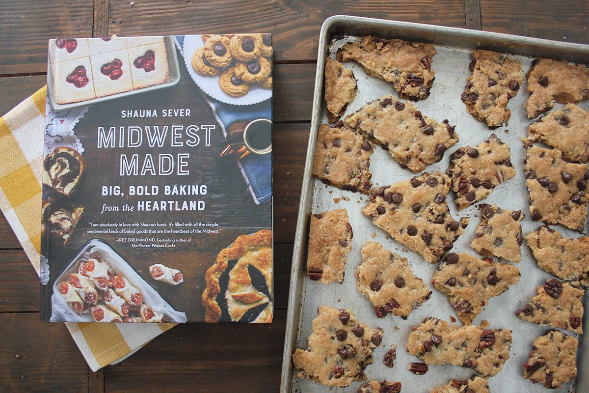 Because I’m such a fan, I’ve tried countless recipes trying to find one that suits me perfectly. These big and buttery cookies are the closest I’ve come, but I’m always open to new options. That’s why when I cracked open Midwest Made by Shauna Sever, I knew I had to try a new rendition of the classic chocolate chip cookie—one that’s not really a cookie at all: cookie brittle.