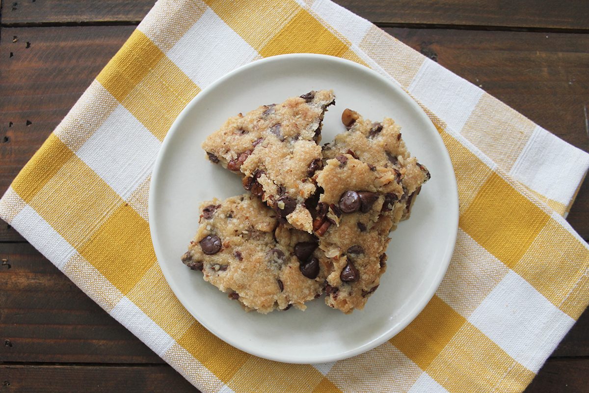 It had all the components of a chocolate chip cookie—butter, sugar, vanilla, chocolate—but without the hassle of scooping cookies and swapping trays in and out of the oven. I knew I had to try this one (and about a dozen other recipes from the book).