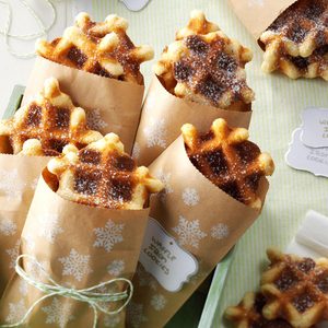 - Sugar cookie waffles, sprinkled with powdered sugar