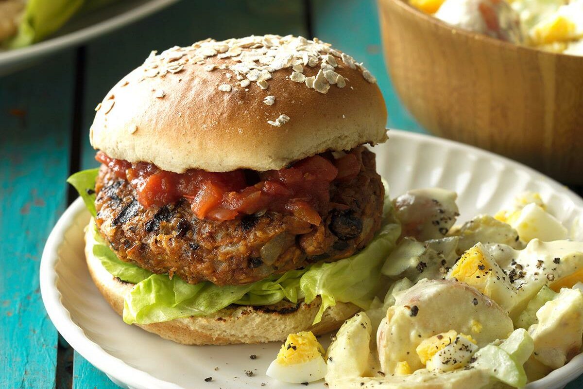 Adding flaxseed to veggie burger recipes is a great way to create a meaty, umami flavor in a meatless meal. Flaxseed can be used instead of bread crumbs to help bind the ingredients together so the patties hold their shape. Bonus: Flaxseed is gluten-free!