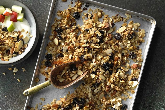 You don’t have to be allergic to eggs or vegan to try this simple swap. Flaxseed thickens in liquid and creates a viscosity similar to a raw egg. To replace one egg, mix 1 tablespoon of ground flaxseed and 3 tablespoons of water, then let it stand for about five minutes to thicken. While you can’t scramble this mixture, it’s the perfect egg replacement for baking, helping bind batters together.