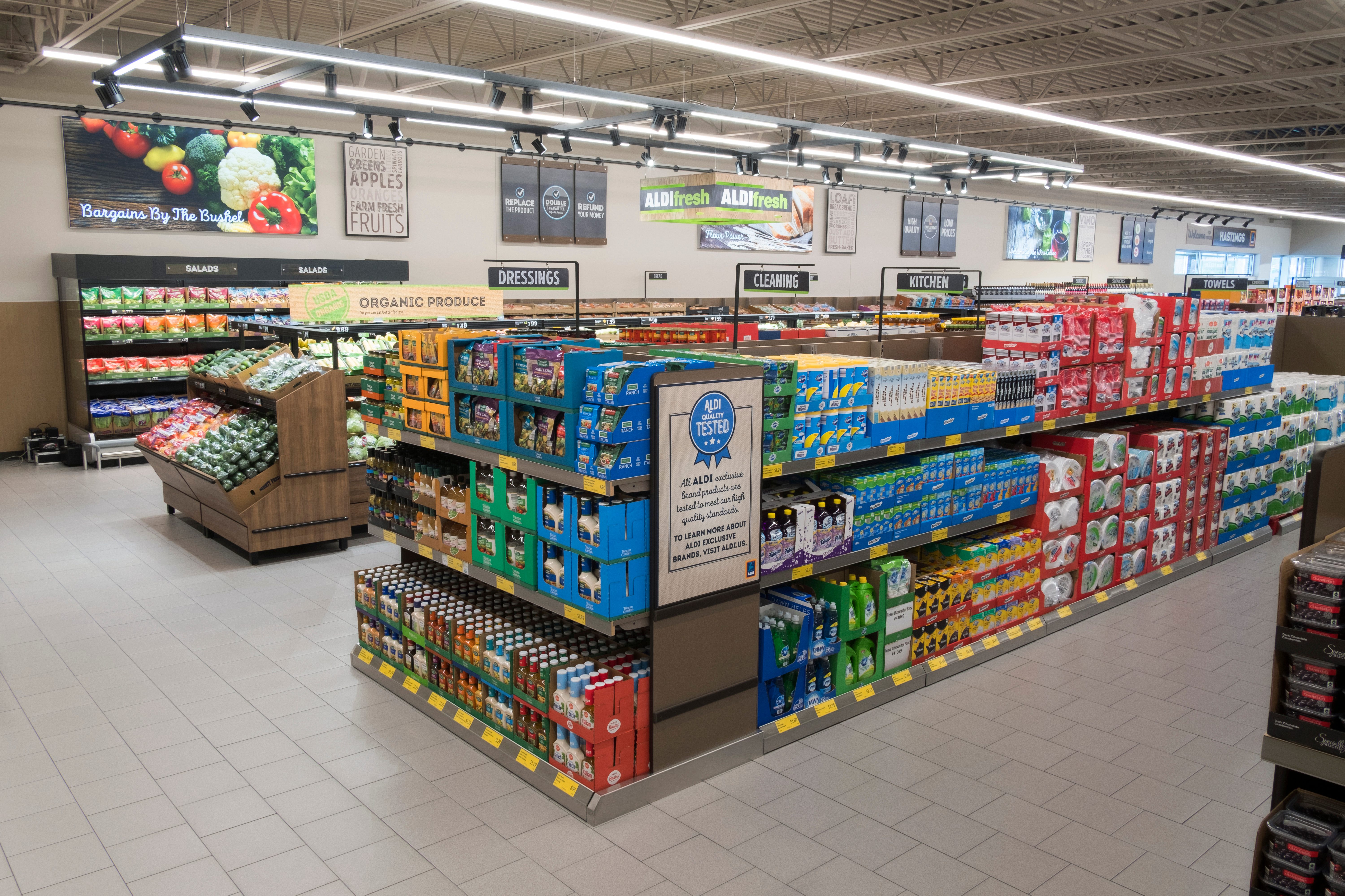 Roughly 90 percent of the Aldi brands are “exclusives,” which means you won’t find them anywhere else. That’s why shoppers can stock up at Aldi for half what it costs at a regular grocery store.