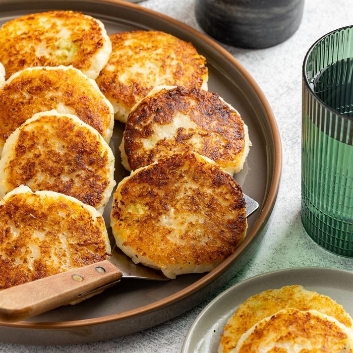 From the Recipe Creator: Each year at Christmas, I make sure I have leftovers to make this bubble and squeak on Boxing Day. I like to serve it with cold turkey and salad. This version can be made any time of year, and it's also good served at brunch with sausages. I find it helpful to use an ice cream scoop to divide the potato mixture into portions before flattening them. —Tanya Aggett, Toronto, Ontario