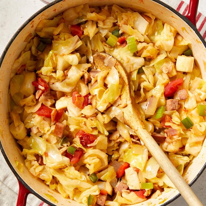 From the Recipe Creator: Ham adds smoky and salty flavor to this southern side dish. You could also used smoked sausage, smoked turkey leg or bacon. Serve the cabbage with your favorite pork chop dinner or roast chicken. —Taste of Home Test Kitchen