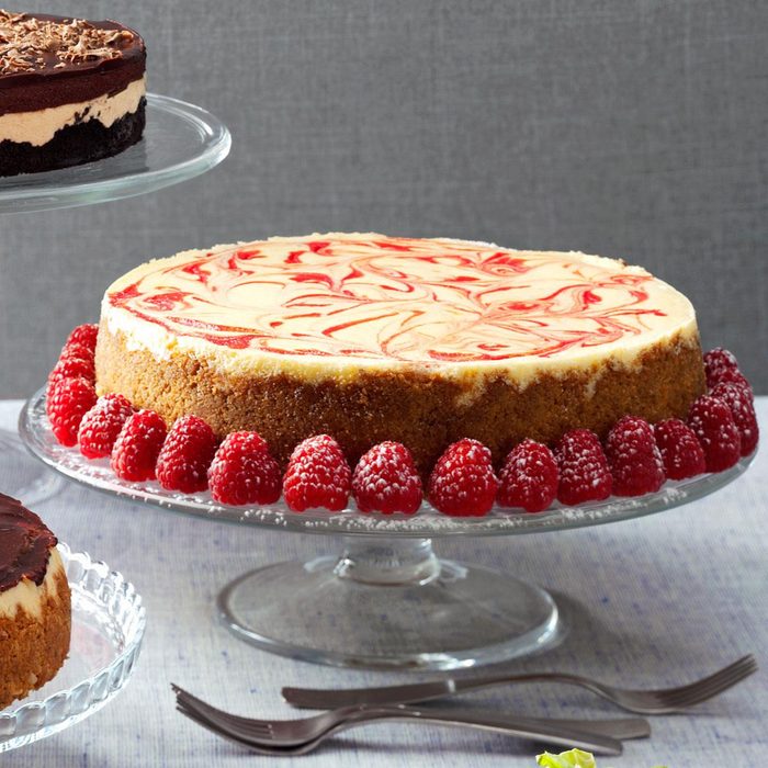 You’ll fall in love with this sweet treat. Each silky slice is topped with juicy raspberries. Yes, you can have cheesecake without breaking the calorie budget. —Taste of Home Test Kitchen