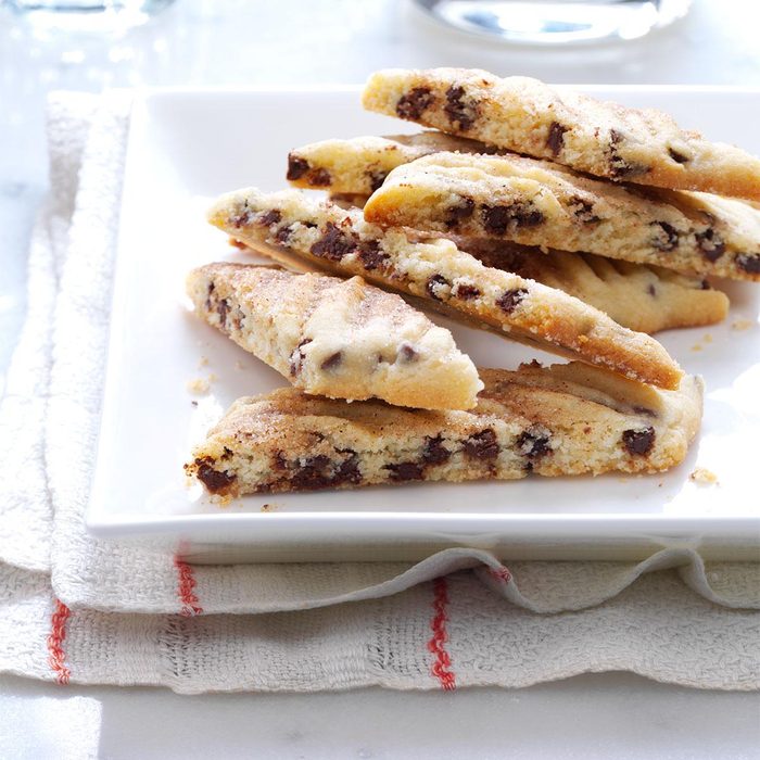 This recipe from Shauna Sever’s Midwest Made has the components of a chocolate chip cookie—butter, sugar, vanilla, chocolate—but without the hassle of scooping cookies and swapping trays in and out of the oven. Best yet: This cookie pieces taste just as good as the real deal. —Lisa Kaminski, Taste of Home Editor
