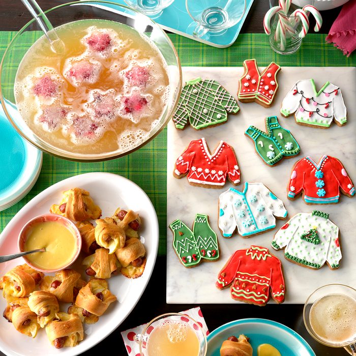 Inject humor into the holidays by hosting an ugly sweater party. That’s right—encourage all your friends to don their most ridiculous holiday apparel and invite them over for a celebration. These parties are a great way to lighten up a stressful season. To make this party simple, serve up our easiest Christmas appetizers and save your prep time for decorating these silly ugly sweater cookies.