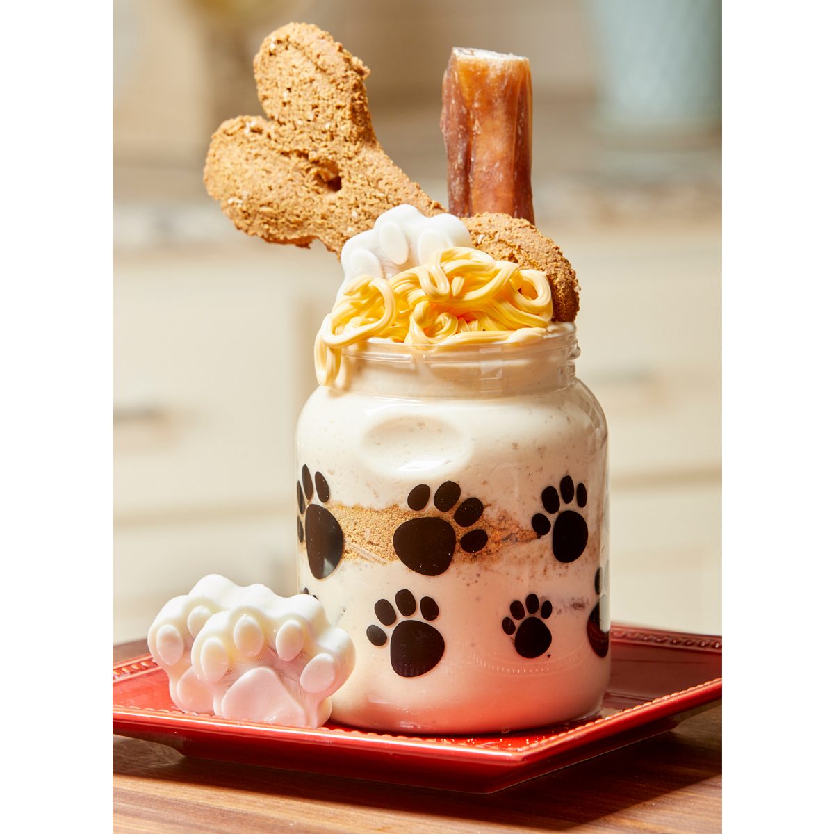 And finally, here’s one for your best friend. Your four-legged best friend, that is—this one is for dogs only! This mixture of Greek yogurt, peanut butter, honey, banana, cheese whiz, and doggie treats will have Fido drooling (even more than usual), but would probably not go over well with humans. And if you want to make your pooch some everyday treats, you can whip up a batch in cheddar or beef flavor.