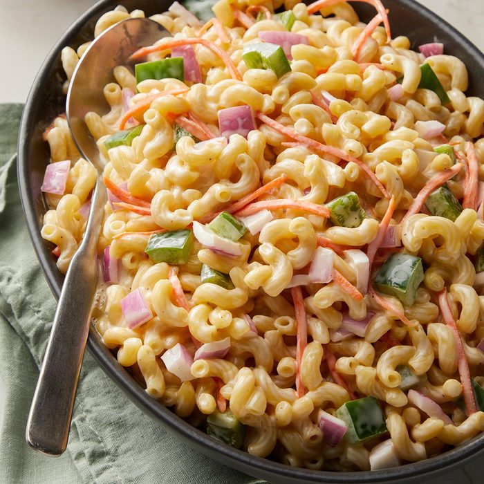 This classic macaroni salad recipe is a refreshingly light take on an all-time favorite. It’s perfect for a fast weeknight dinner or a festive weekend barbecue. —Dorothy Bayes, Sardis, Ohio