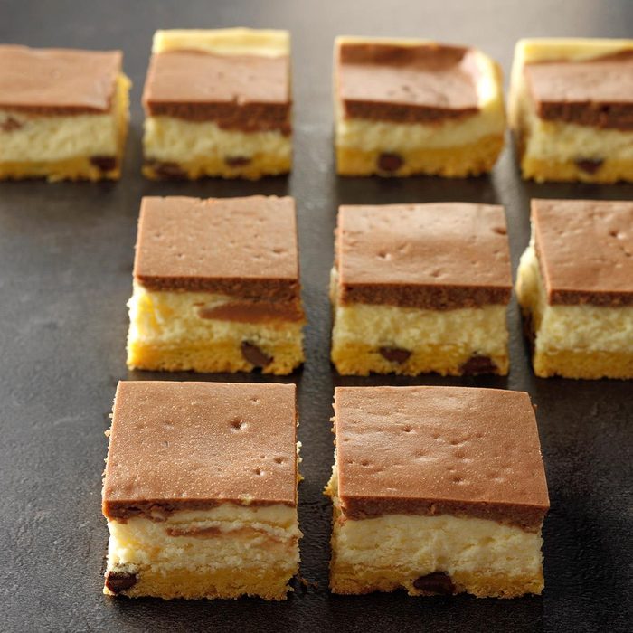 Can't choose between chocolate and vanilla cheesecake? Have both when you make this bar recipe with two distinct layers. —Andrea Price, Grafton, Wisconsin