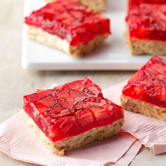 It’s rhubarb season, so now’s the time to try this rich and tangy cheese bar. It’s bound to be a hit with the rhubarb lovers you know. —Sharon Schmidt, Mandan, North Dakota