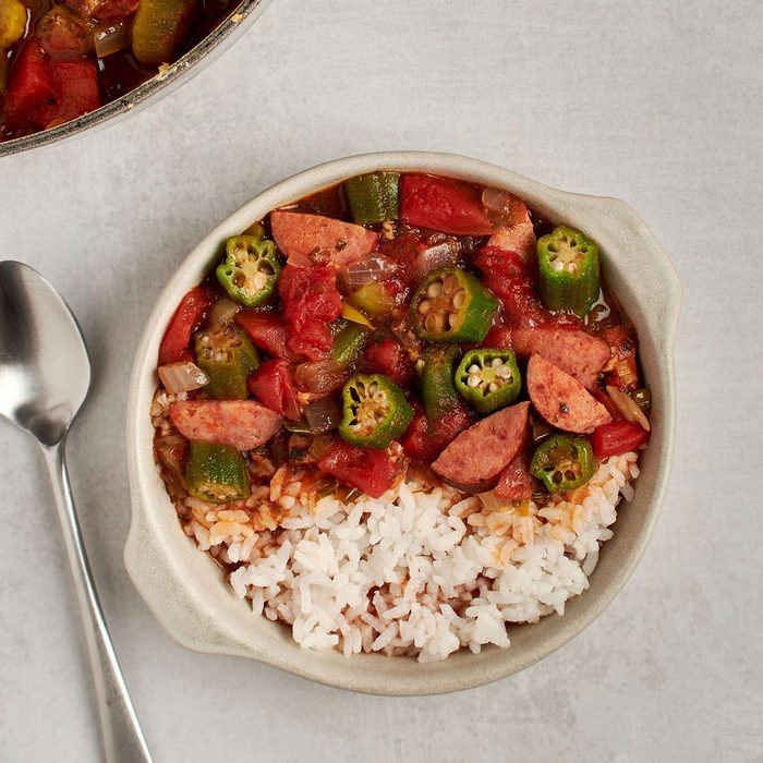 My husband and I worked on this recipe together. We make a big pot and freeze it to enjoy all winter long. We sometimes stir in sauteed shrimp for a delicious addition to this stew. —Lisa Nelson, Bluffton, South Carolina