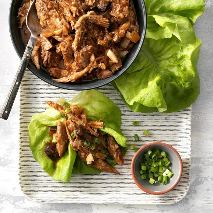 3 filled lettuce wraps (calculated without optional toppings): 251 calories, 7g fat (3g saturated fat), 75mg cholesterol, 806mg sodium, 7g carbohydrate (2g sugars, 2g fiber), 43g protein. Diabetic Exchanges: 5 lean meat, 1 vegetable.
