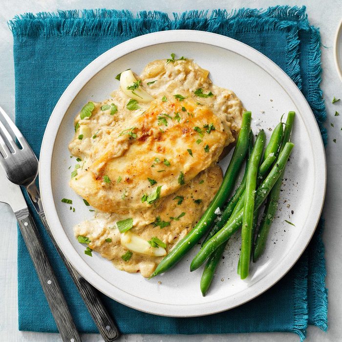 Just thinking about this dish sparks my appetite. The ham and cheese rolled inside are a tasty surprise. Leftovers reheat well and make a perfect lunch with a green salad. —Jean Sherwood, Kenneth City, Florida