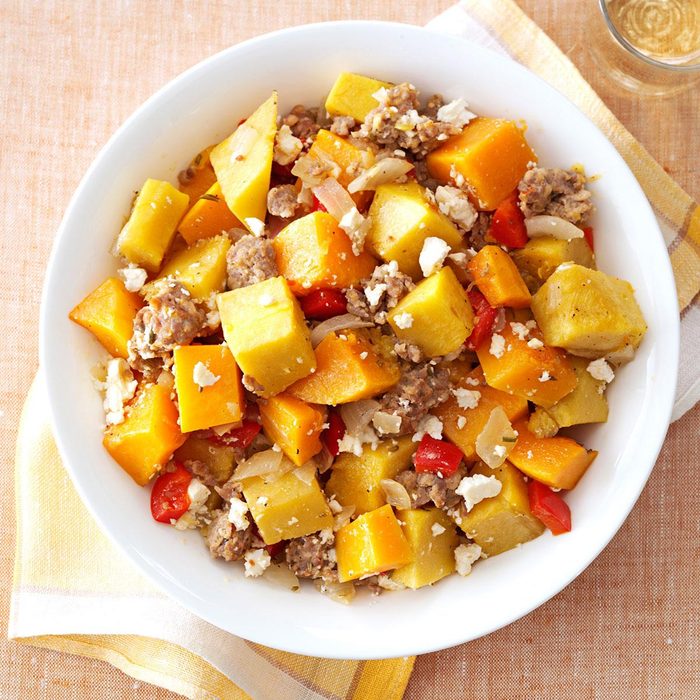 This time of year, I can't resist butternut squash, with its bright color and fall flavor. It helps make this casserole a guaranteed hit at potlucks. —Craig Simpson, Savannah, Georgia
