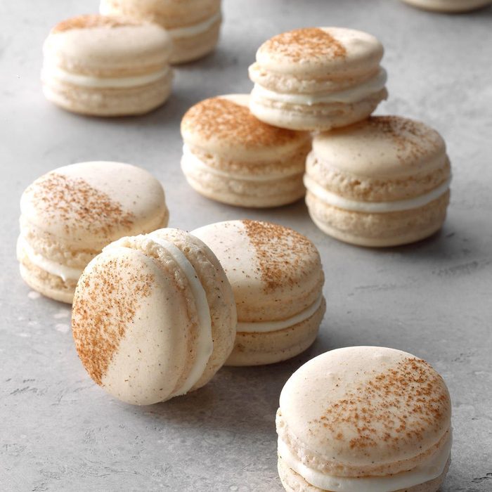 Light, decadent macarons are a showstopping dessert that’s naturally gluten-free, as they’re made with almond flour and egg whites. This recipe calls for sandwiching the macarons with a fluffy cream cheese frosting, though you may also use the more traditional ganache or buttercream.