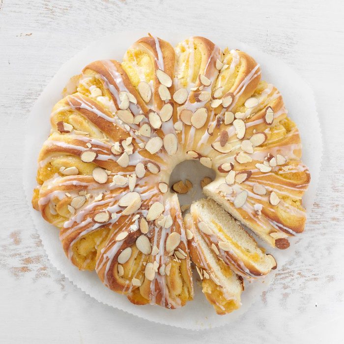 One of Paul’s trademark extra-difficult technicals is an apricot couronne, a ring-shaped loaf filled with apricot preserves, almond paste and flaked almonds. This one takes a little extra time to make, but it turns out beautifully. Mary Berry would be proud if you tried this one at home!