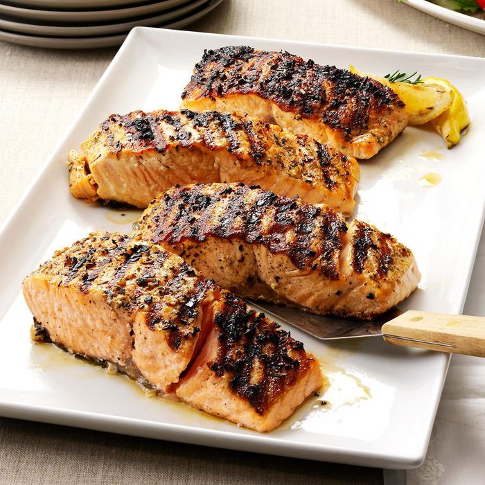 There are so many amazing grilled fish recipes! When you’re cooking it skin-on, the Char-Broil Great Book of Grilling suggests grabbing two spatulas to work some magic. When the salmon’s fully cooked on the skin side, it should be easy to slide a spatula beneath the skin to remove it.