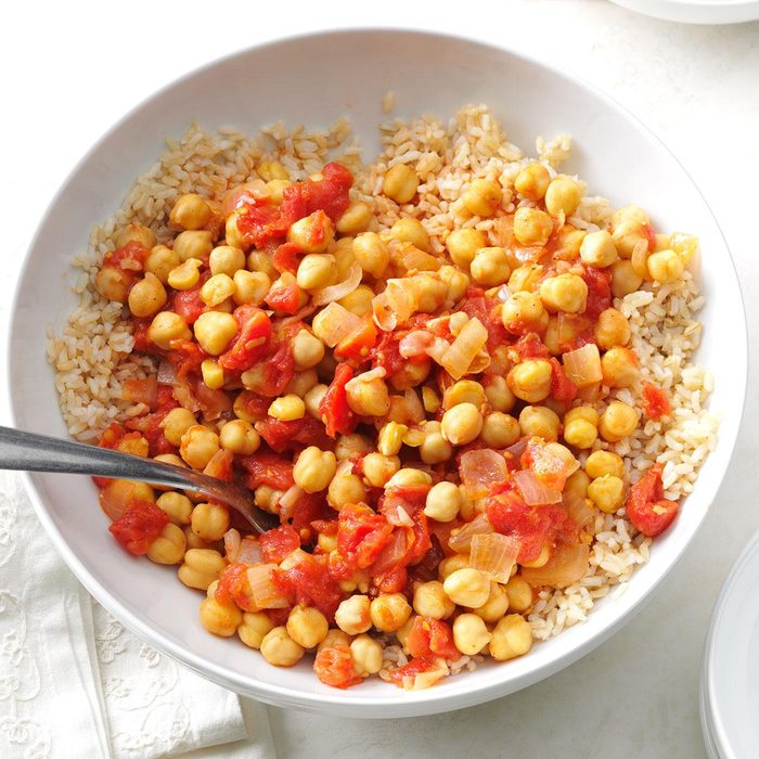 Freeze directions: Do not prepare rice until later. Freeze cooled chickpea mixture in freezer containers. To use, partially thaw in refrigerator overnight. Heat through in a saucepan, stirring occasionally and adding a little broth if necessary. Serve with rice.