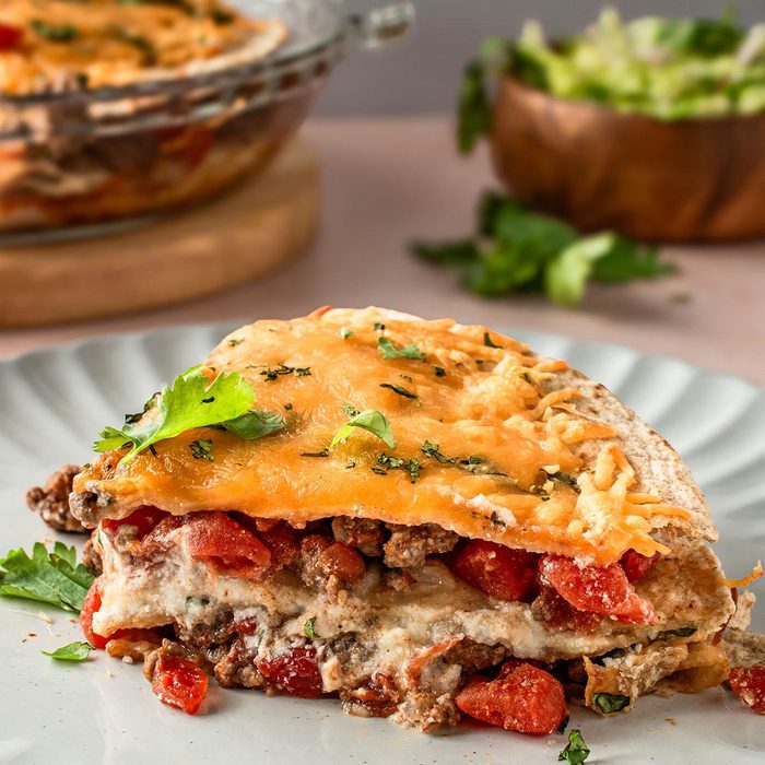 A must-try dinner: Here's a healthy layered casserole using whole wheat tortillas, lean beef and more veggies than traditional recipes. —Taste of Home Test Kitchen