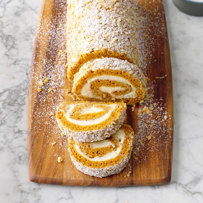 A great cake roll starts with, of course, a great cake roll recipe. We absolutely love this walnut pumpkin cake roll. It’s a great holiday treat with all those warming spices and rich cream cheese frosting.