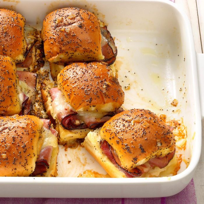 My next-door neighbor shared this recipe with me, and I simply cannot improve it! You can make it ahead and cook it quickly when company arrives. The combo of poppy seeds, ham and cheese, horseradish and brown sugar makes it so delicious. —Iris Weihemuller, Baxter, Minnesota