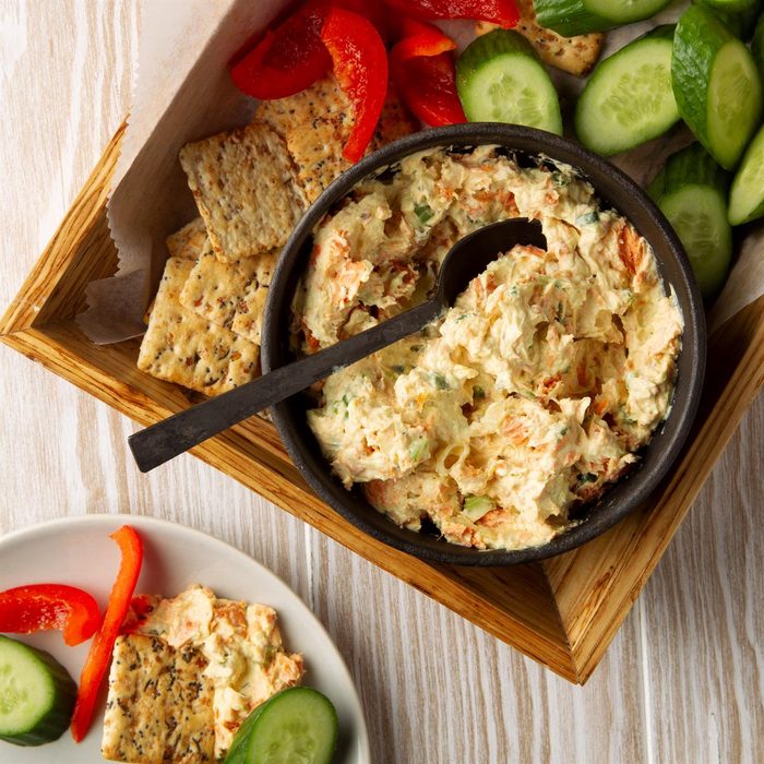 This salmon dip is a delightful hors d’oeuvre that’s excellent for any occasion. The combination of salmon, cream cheese and spices gives it terrific flavor. —Raymonde Hebert Bernier, Saint-Hyacinthe, Quebec