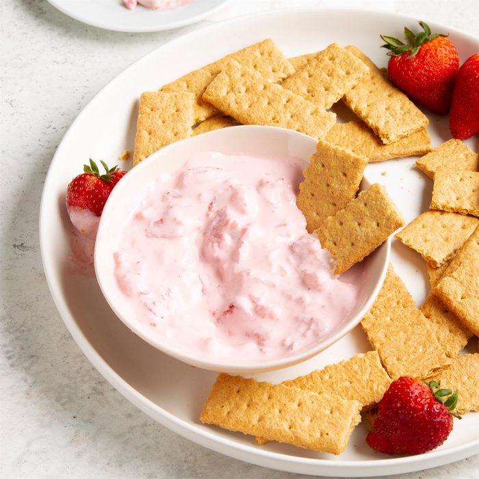 After a card game one evening, our hostess served graham crackers spread with prepared strawberry cream cheese. The flavor combination was delicious. So I decided to create this Strawberry Cream Cheese Dip using fresh berries. Guests appreciate this simple snack. —Carol Gaus, Elk Grove Village, Illinois