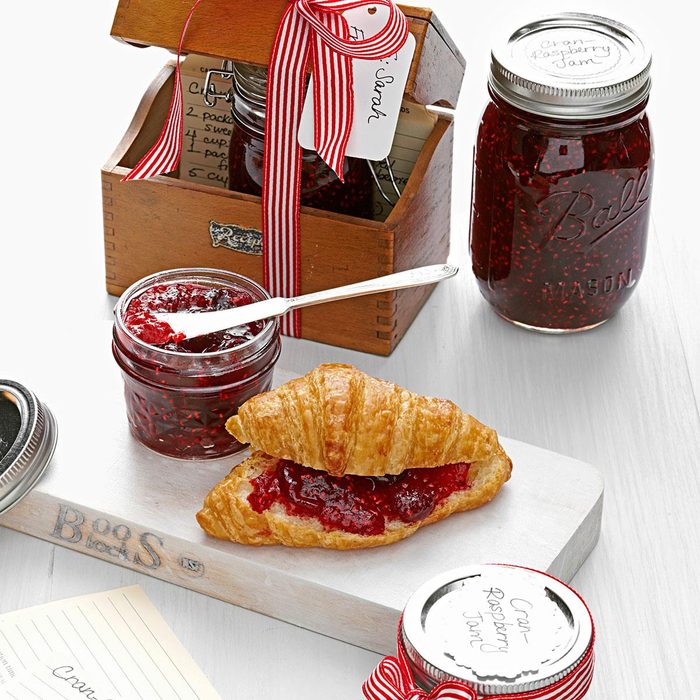 I'm sure to pick up extra bags of cranberries for the freezer in the fall so that I can make this lovely, delicious jam year-round. My kids love it on peanut butter sandwiches. Jars of this pretty ruby-colored jam also make great gifts. —Marjilee Booth, Chino Hills, California