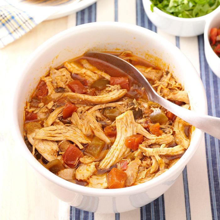 I love Mexican food, but not the high calorie count that often comes with it. This easy dish is healthy, delicious and a definite crowd pleaser! I like to serve the chicken with warm tortillas, rice, beans and salsa. For an equally awesome dish, you can substitute beef or pork for the chicken. —Heather Walker, Scottsdale, Arizona