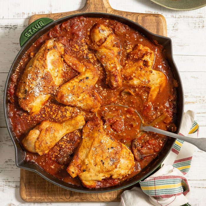 From the Recipe Creator: This chicken cacciatore recipe makes a good Sunday dinner since the recipe is so simple to prepare. It's also inexpensive and loaded with lots of vegetables. —Barbara Roberts, Courtenay, British Columbia