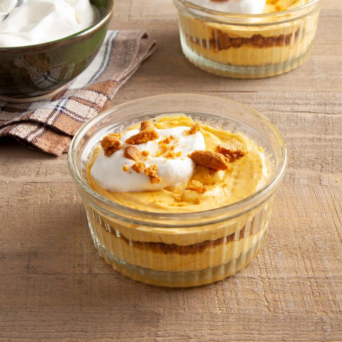 If you’ve had your fill of pumpkin pie, this cool and creamy pumpkin mousse is perfect for you. Its light and fluffy texture won’t make you feel “stuffed” after your favorite turkey dinner. —Taste of Home Test Kitchen, Milwaukee, Wisconsin