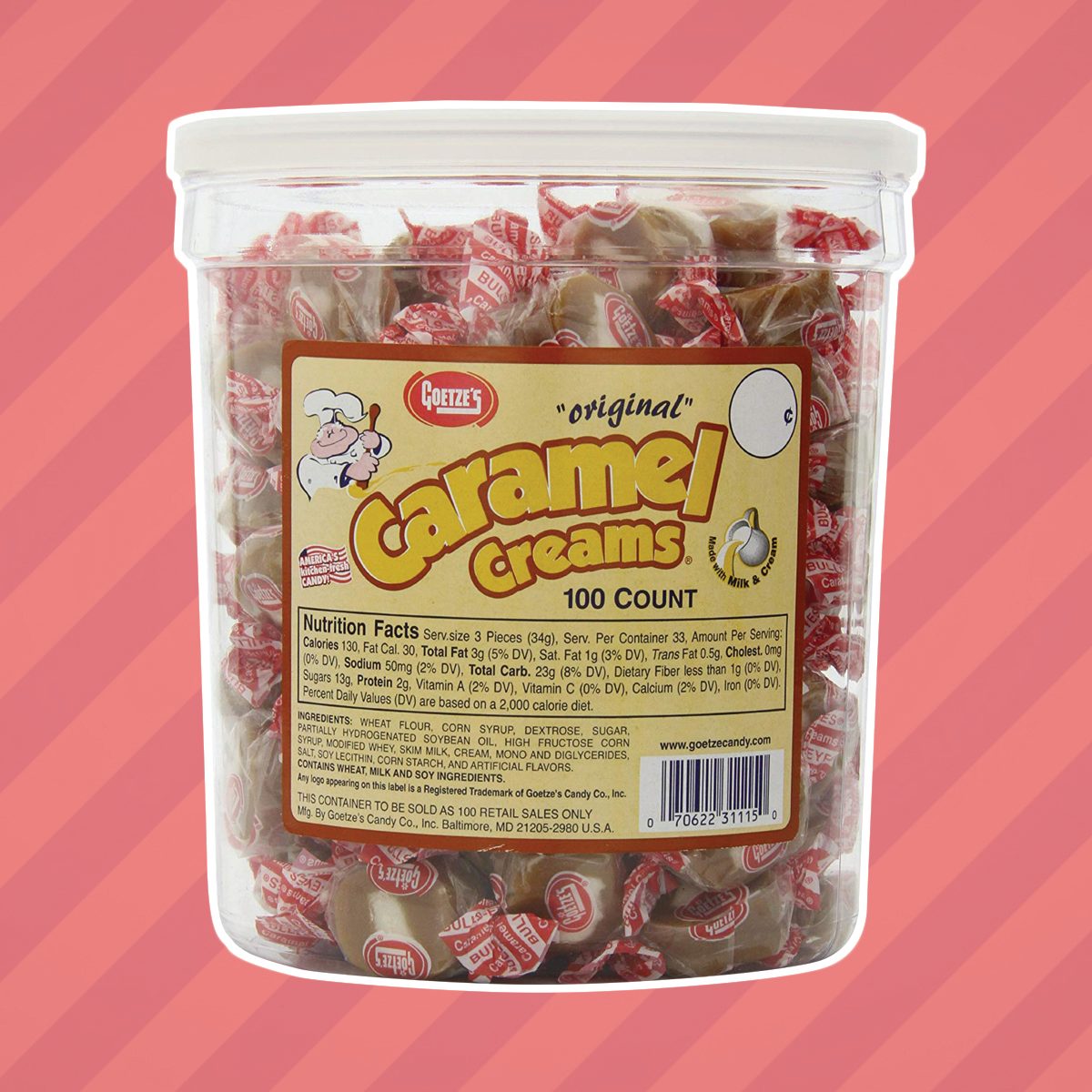 Caramel Creams, more popularly known as Bulls-Eyes, hit the target when it comes to creating a tasty flavor combination. Made by Goetze’s Candy Company in Baltimore, Maryland for over a century, a Bulls-Eye is a chunk of sweet vanilla cream hugged by savory, chewy caramel.