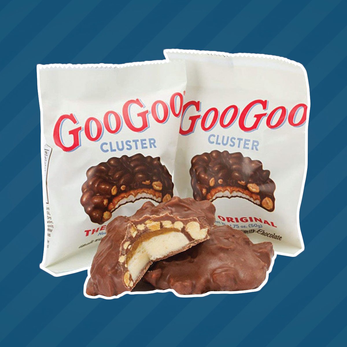 Goo Goo Clusters are a one-of-a-kind candy bar made with a medley of caramel, roasted peanuts and marshmallow nougat covered in milk chocolate. The candy has been made in Nashville since 1912 and was the first candy bar that had more than one main ingredient.