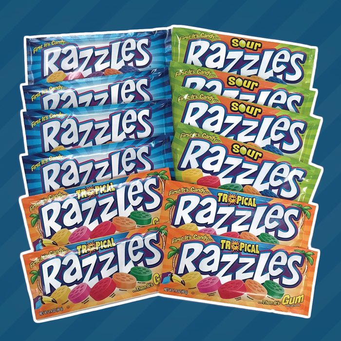 “First it’s a candy, then it’s a gum! Little round Razzles are so much fun!” As the candy brand’s jingle proclaims, Razzles are coin-shaped candies that, when chewed, magically transform into a delicious gum. The candy was popular in the ’60s and ’70s, but the 2004 film 13 Going on 30 revived the popularity of this two-in-one confection.