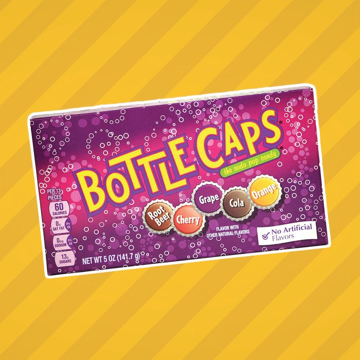 You might remember when Bottlecaps debuted in the ’70s. The bottlecap-shaped candy comes in iconic soda flavors like cola, root beer, grape, orange and cherry. Some even claim that the candy gives off an effervescent, fizzy sensation when it’s chewed, almost like drinking pop from a bottle.