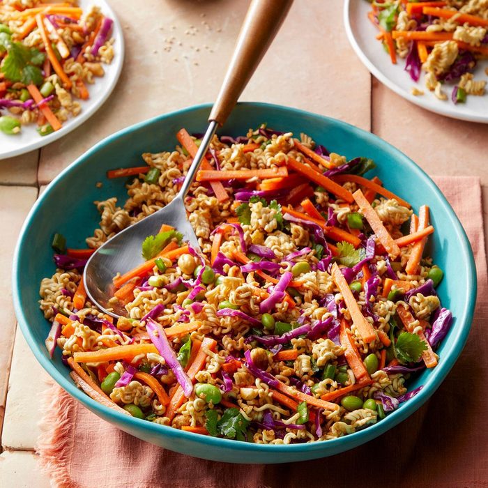 This crunchy soy-ginger ramen slaw is a refreshing side dish that complements a lot of main dishes, especially grilled meats and sandwiches. You can also add cooked chicken, shrimp or pork and turn it into a main dish! —Thomas Moore, Dedham, Massachusetts