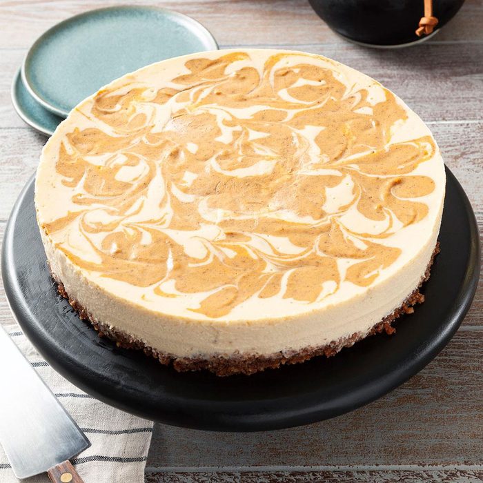 With a cinnamon-flavored almond flour crust and a dreamy pumpkin filling sweetened with stevia, this keto-friendly version of cheesecake just might become your new favorite part of fall. —Julie Andrews, Rockford, Michigan