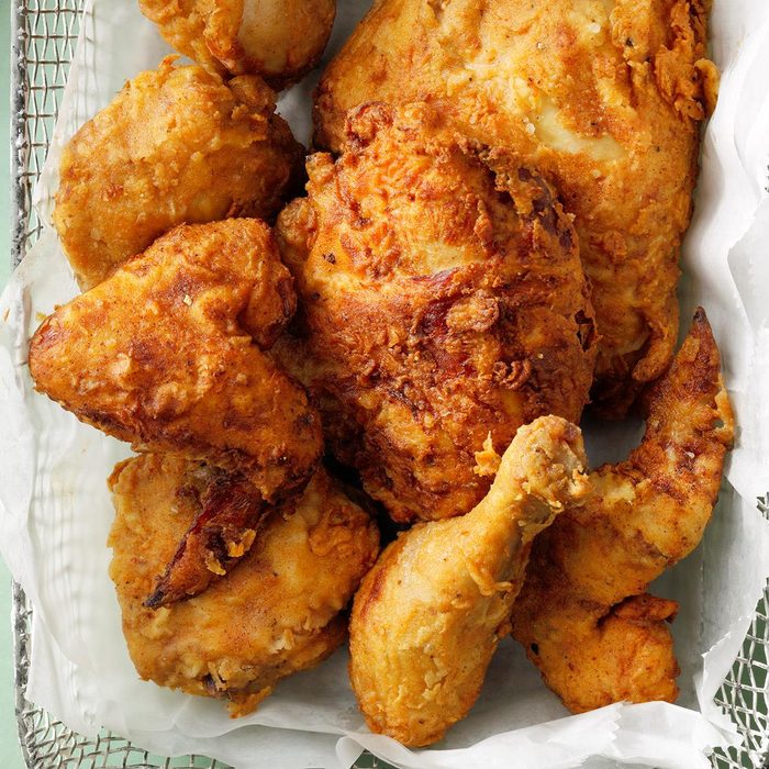 Fried chicken is my favorite food, so it’s no surprise that I’ve tried dozens of recipes looking for the perfect batch. This recipe is the result of my mission to create my own foolproof rendition. —Audrey Alfaro, Rapid City, South Dakota