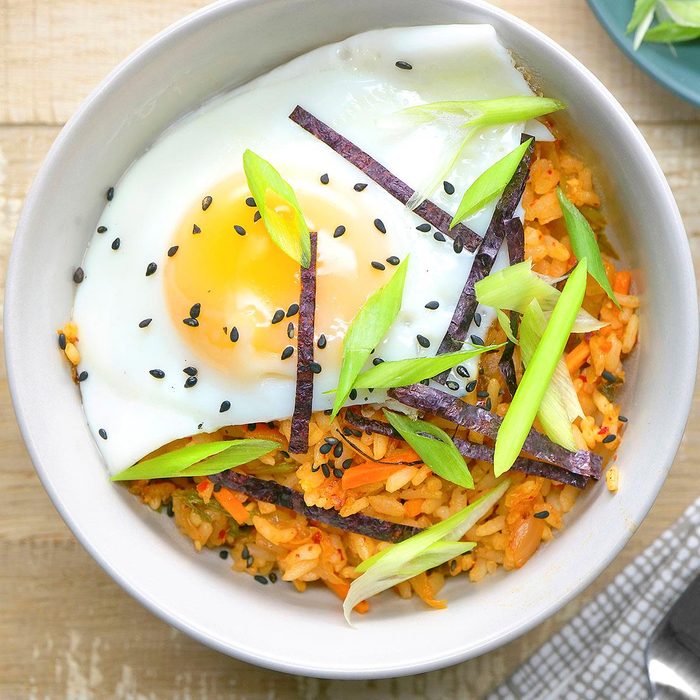From the Recipe Creator: Forget ordinary fried rice! Kimchi fried rice is just as easy, but it packs a flavorful punch. This is a fantastic use for leftovers too. You can freeze the fried rice for up to three months. When cooking your defrosted rice, add a little extra soy sauce so it doesn't dry out. —Taste of Home Test Kitchen