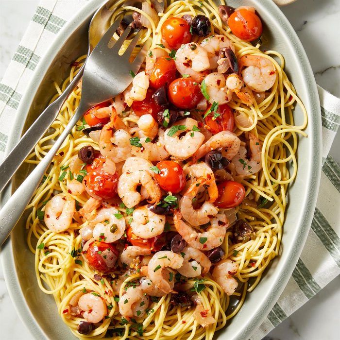 From the Recipe Creator: I throw together these bold ingredients for a feisty seafood pasta. —Lynda Balslev, Sausalito, California