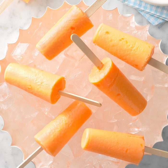For a lower-fat alternative to ice cream-filled pops, try this citrus novelty. The tangy orange flavor will make your taste buds tingle, while the silky smooth texture offers cool comfort. —Taste of Home Test Kitchen