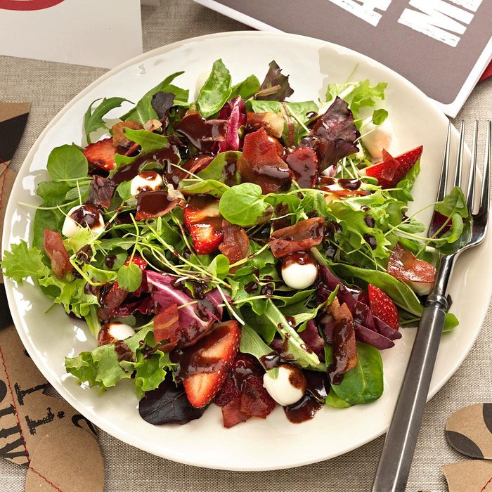 A chocolate salad dressing? How else would you dress a salad on Valentine's Day? Don't let the unusual name and flavor combination confuse you—the salty prosciutto and mellow mozzarella are beautifully balanced with the sweet-tart chocolate balsamic vinegar dressing. —Jenni Sharp, Milwaukee, Wisconsin