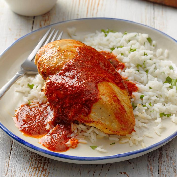 If you’re not familiar with chicken mole (pronounced mo-LAY), don’t be afraid of this versatile Mexican sauce. I love sharing this chicken mole recipe because it’s a great one to experiment with. —Darlene Morris, Franklinton, Louisiana
