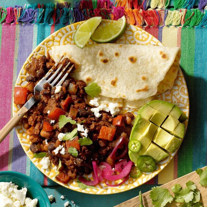 In contrast to traditional tacos, these taste complete as is, without further garnishes or sauces. I’ve also made this using bite-sized pieces of chicken thighs and increasing the cooking time appropriately. —Helen Glazier, Seattle