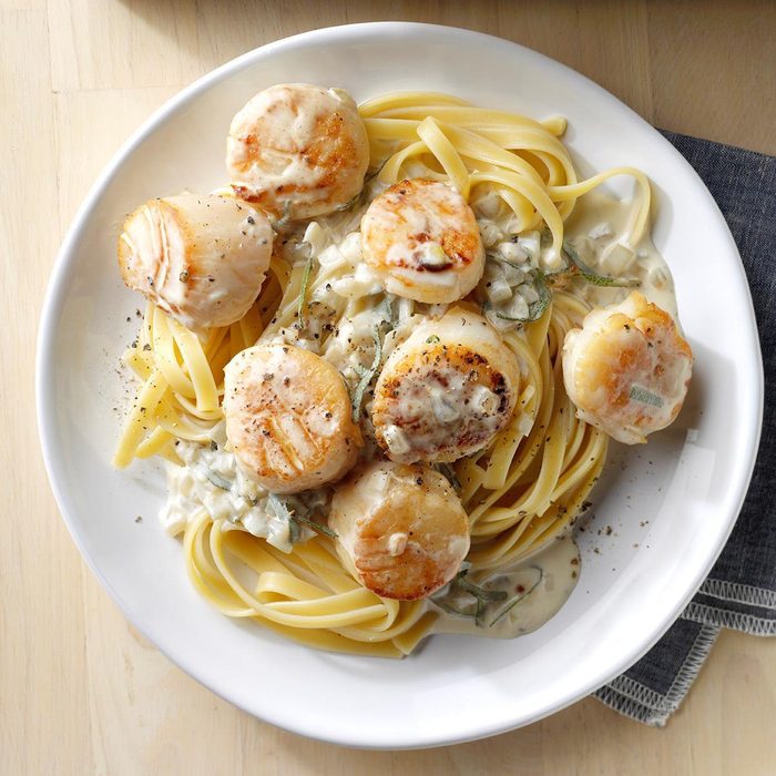 Living in Kansas, fresh seafood can be hard to come by. Luckily, frozen scallops aren’t. This dish offers coastal flavor to those of us in the Midwest. —Sarah Befort, Hays, Kansas