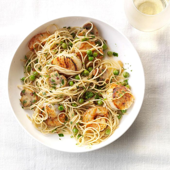 This delicate dish tastes so bright with a touch of lemon and tender sauteed scallops. Serve with crusty whole grain bread, and you have an impressive dinner that comes together in a flash. —Thomas Faglon, Somerset, New Jersey