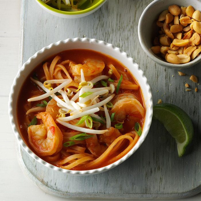 Pad thai is one of my favorite dishes, but it is often loaded with extra calories. This soup is a healthier option that has all the flavor of traditional versions. —Julie Merriman, Seattle, Washington