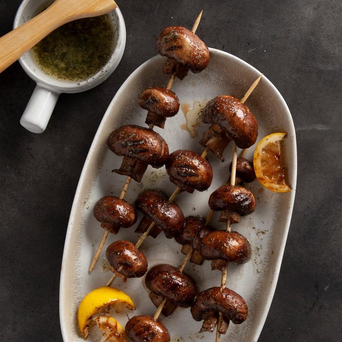 Grilled mushrooms always taste good, but this easy recipe makes them taste even more fantastic. As the mother of two children, I love to cook entire meals on the grill. It’s fun spending time outdoors with the kids. —Melanie Knoll, Marshalltown, Iowa
