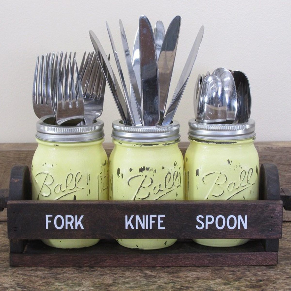 You can use a loaf pan for more than baked goods. Grab three or four vintage loaf pans ($38) for forks, knives, spoons and other odds n’ ends. This nostalgic look is so perfect when you’re making something from Grandma’s cookbook.